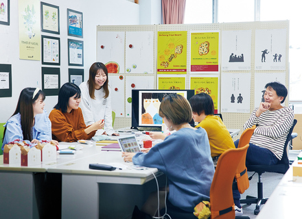 定員150名の少人数制教育を実施。学生一人ひとりと向き合い、それぞれの志向や適性を見すえ、「表現するための確かな技術を身につけること」、そして「自分自身で考える力をつけること」の二つに重点をおいた指導を行っています。学生たちの伸びやかな感受性を尊重しつつ、あわせて、しっかりとした思考力を養いながら多くのつくり手を育んでいます。また、学生同士、そして教員と学生との距離も近く、コミュニケーションを取りやすい環境が整っています。
