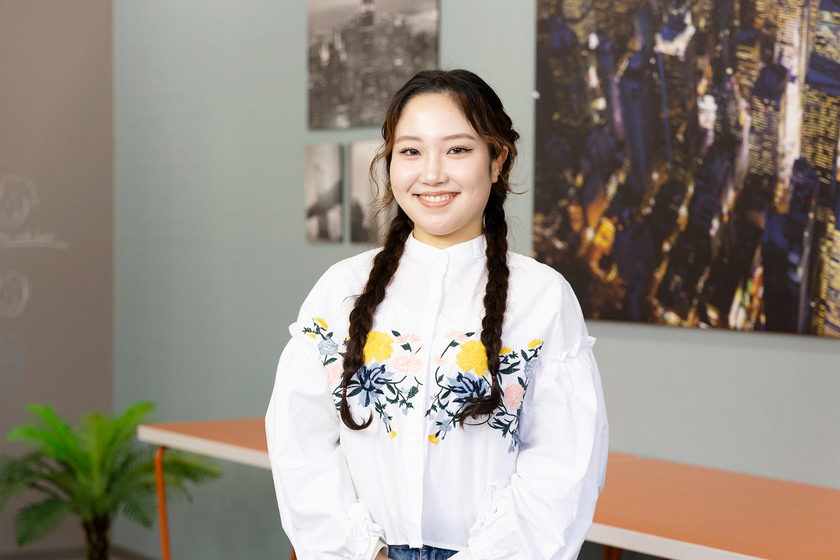アメリカ研修やファッションショーのヘアメイク、外国人への着つけボランティアなど、課外活動でも英語を話す機会が多くあり、「英語が好き」から「もっと英語を学びたい」という気持ちに変わってきました。将来は英語とホスピタリティを活かせる空港の免税店で働きたいと考えていて、就職活動に向けて励んでいます。