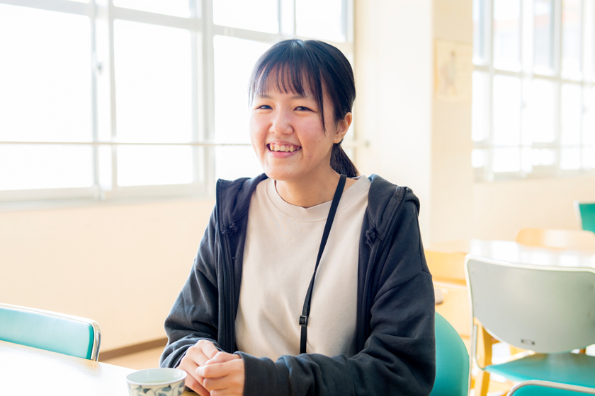 社会福祉法人似島学園 平和ホーム/人間生活学科 人間心理コース/2021年卒/似島学園は2歳から18歳(高3)までの子どもが暮らす全寮制の施設。職員は交代制で泊まり込み、寝食を共にしながら、子ども達の成長に関わっていく。森光さんは入職後すぐ男子棟(ホーム)担当として仕事を開始。入職5年目からは女子棟担当となり、小1から中2までの子ども達と日々関わる。「この仕事はやりがいも深いですが責任もあります。誰かの人生に関わる責任についてどう考えるか、人の気持ちを想像できるかどうか、人とのコミュニケーションが好きかどうか、自分とも向き合いながらしっかりと考えてみてください」とアドバイスをくれた。