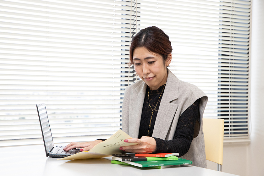 建築確認検査機関勤務/能率科 グローバルコミュニケーションコース/2024年卒/高校卒業後、アパレル企業や建築関連会社を経て、現在の職場に勤務。働きながら学び、自由が丘産能短期大学通信教育課程在学中に、単位認定される『色彩検定(R)2級』の資格を取得。同学卒業後は産業能率大学3年次に編入し、現在、心理学を学んでいる。これまでの経験を活かし、将来は宅地建物取引士資格を取得したいと考えている。