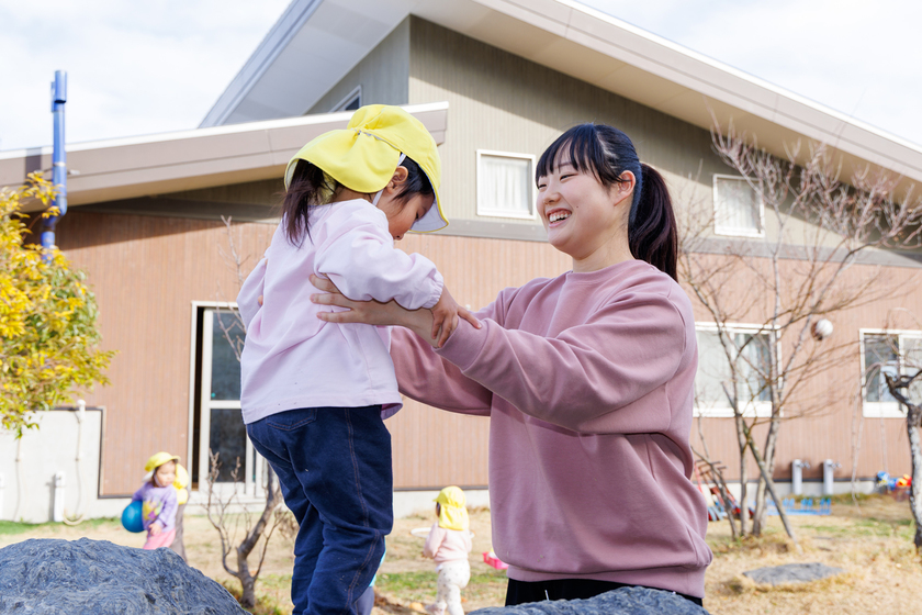 精華女子短期大学 幼児保育学科卒業後、福岡県福津市にある、いろどり真愛保育園で1歳児の担任をしています。当園は、子ども達を中心に、「絆・自然体験・食・心・健康安全」の5つの分野が連動しながら保育活動を行っています。1歳児は、つかまり立ちから一人歩きへと運動能力が飛躍的に発達し、行動範囲が広がり、自己主張や自我が芽生え、好奇心旺盛に探索行動が活発になる時期です。そんな子ども達の挑戦していく姿や成功して喜んでいる場面を保護者の方と一緒に、一番近くで喜び合えるのがやりがいになっています。できることが急増し、心身ともに大きく成長する「赤ちゃんから幼児へ」と変化する段階は、人としての尊さも実感できます。