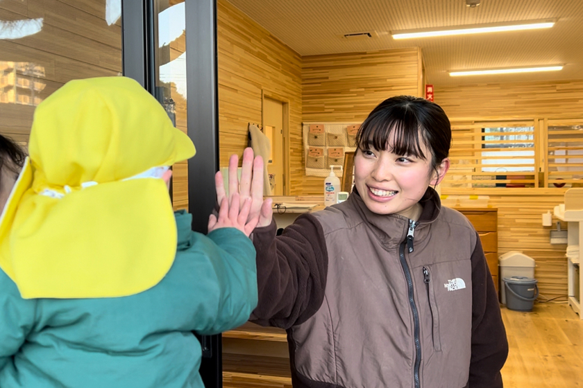 子どもたちが帰る際には笑顔のハイタッチで見送ります