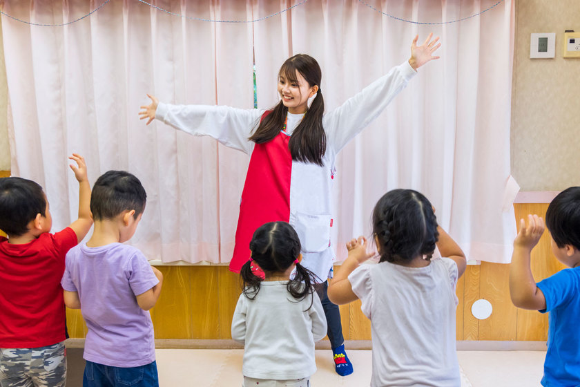 川口市立桜保育所/こども学科/2024年3月卒/大学では保育士資格に加え、幼稚園教諭二種免許状に認定ベビーシッター資格、おもちゃインストラクター資格、ネイチャーゲームリーダー資格も取得。「ベテランの先輩方をお手本に、もっとたくさんの活動やあそびを提案できるようになりたいです!」と、向上心を持って保育に励んでいる。