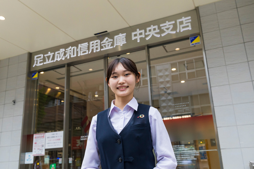 ゼミの課題で信用金庫について調べたことが、今の仕事を選ぶきっかけになりました。福利厚生が整っており、結婚や出産を経ても働き続けやすい点や、経験や知識を少しずつ積み重ねていけるところに魅力を感じ、自分が理想とする働き方に合っていると思ったからです。現在勤務している足立成和信用金庫は、「地域応援!“おせっかい宣言”」という言葉の通り、地域とのつながりを大切にしている職場です。職員同士のコミュニケーションも活発で、アットホームな雰囲気の中、楽しく働くことができています。信用金庫という進路を教えてくれた川口短期大学の先生方には、とても感謝しています。