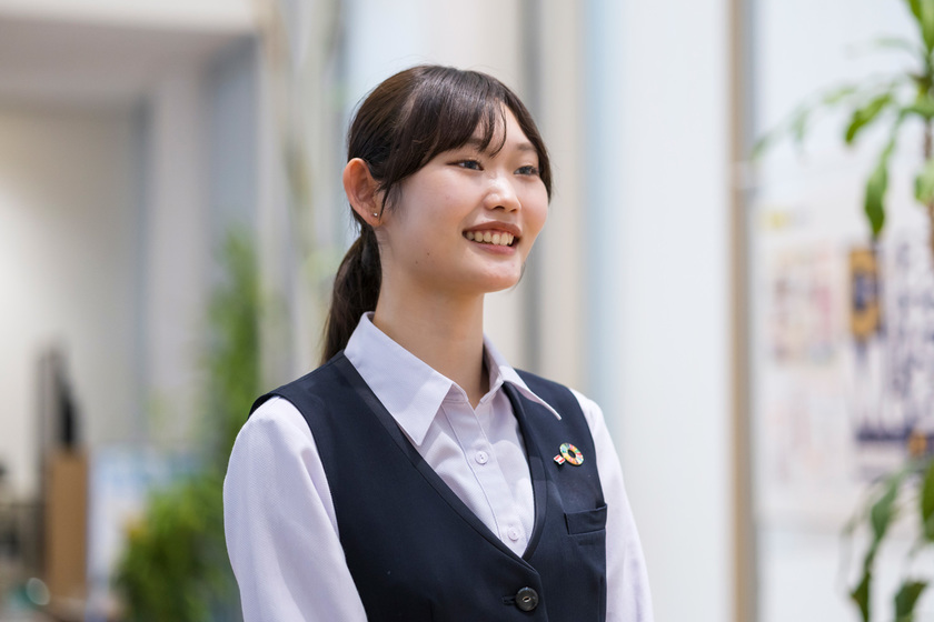 高校時代は将来やりたい仕事がまだ決まっていなかったため、ビジネスを幅広く学べる川短に入学。金融業界だけでなく、ブライダル業界や旅行・観光業界など、興味のある業界に関する授業を積極的に受講しました。その中で身についた「相手の立場に立って考える姿勢」は、多くのお客様と関わる金融業界でも活かされていると感じています。また、簿記やパソコンスキル、実践的なビジネスマナーを学べる授業が充実していた点も魅力でした。就職活動での強みになっただけでなく、現在の仕事でも先輩方からの信頼につながり、これからお客様と接する際の自信にもなっています。