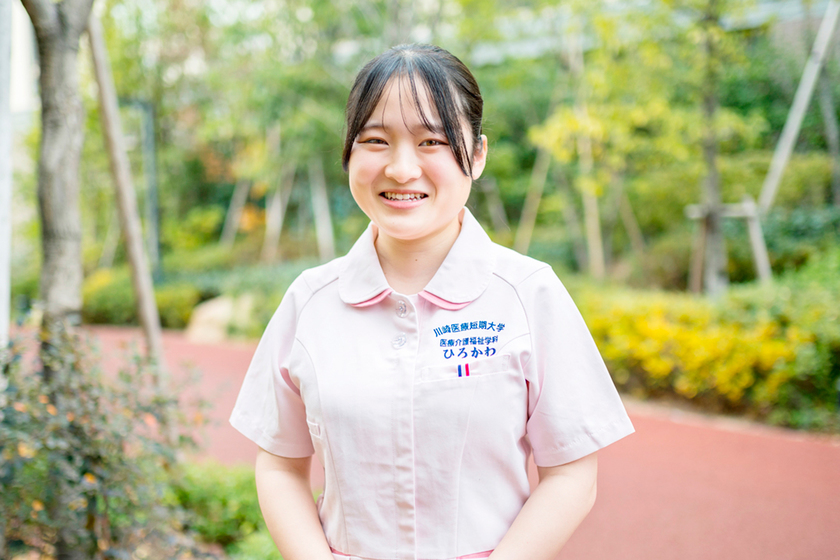 「どんな介護福祉士になりたいか」について考えることも大切です。私が川崎医療短期大学に入学した決め手は「医療に強い介護福祉士」という教育方針。チーム医療の一員として介護に携われることに魅力を感じました。