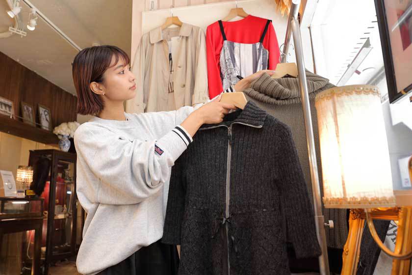 古着屋の店長兼バイヤーをして3年になります。店舗運営、古着の買い付け、SNSなどを活用したPRなど、やりたっかことを実現できるのが今の職場の魅力です。バイヤーとして年に2~3度イタリアに行き、ハイブランドを中心としたヴィンテージものの買い付けを任されています。ショップのお客さまは20歳前後の女性が中心ですが、なかには親子で来ていただいる方もいます。接客する際には、私がその商品と出会い、どういう思いで買い付けてきたかをお話することも多く、これは古着屋ならではの楽しさだと思っています。私が海外で仕入れた商品を、お客さまに買って頂いた時は嬉しい気持ちでいっぱいになります。