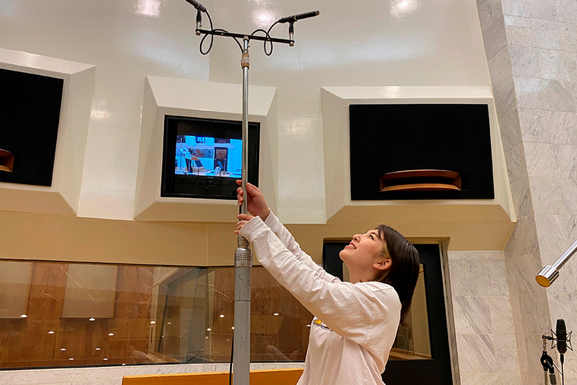 私が勤める「サウンド・シティ」はCM・MV・番組の映像や音声の編集を手掛ける会社。映像作品にあわせて流される「劇伴」のレコーディングに携わりたいという思いがあり、それがサウンド・シティで働きたいと思った理由のひとつでした。実際に自分がレコーディングに関わった音源がドラマなどで使用されていると、純粋に嬉しいです。また、制作チームの一員としてさまざまなプログラムに携われることにもやりがいを感じます。