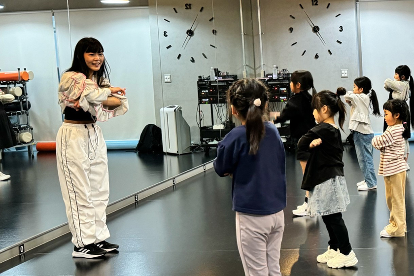 ダンススクールで子供達にダンスを教えるダンスインストラクターと、CMやMVなどのアーティストやタレントの振付を考えて教えるメディア振付という仕事をしています。ダンスレッスンではどこでつまずいているかを見て指導し、その後少しずつ「できた!」が増えていくのが嬉しいです。インストラクターは自分が教えるだけでなく、他の先生のレッスンを見たり実際に受けたりしてみて、自身も技を磨いて成長できる仕事だと思います。メディア振付での喜びは、自分の作った振付をアーティストやタレントが踊り、さらにそのアーティストのファンやいろんな方がSNSなどを通してダンスを楽しんでくれること。次も頑張ろうという気持ちになります!