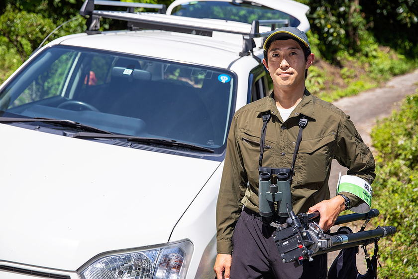 個体に影響が及ばぬように遠くから調査するので、本格的な機材を使用します