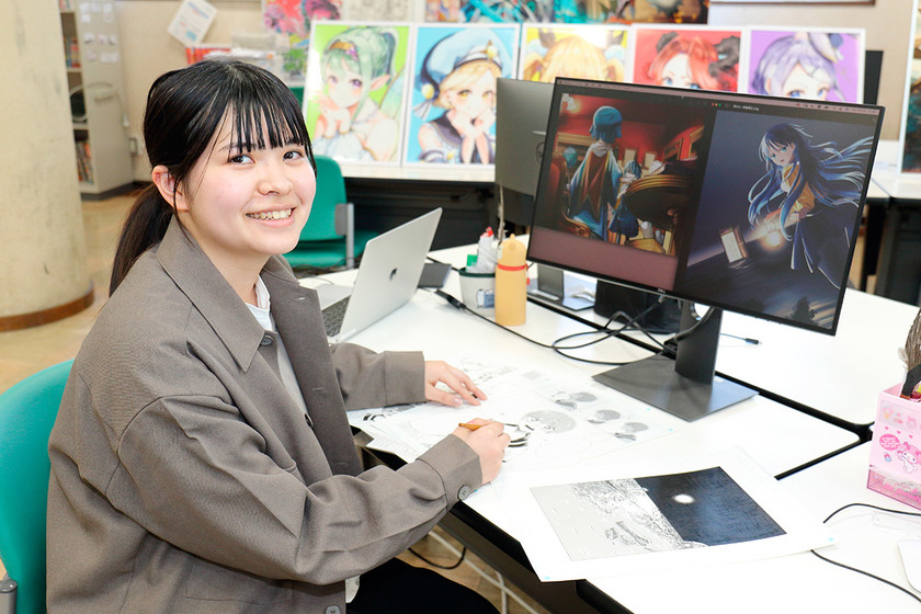 オープンキャンパスで体験授業を受けて、プロの漫画家やイラストレーターの方が講師を務めていていることを知りました。経験豊富な先生から直接教えてもらえるところに魅力を感じ、入学することを決めました。