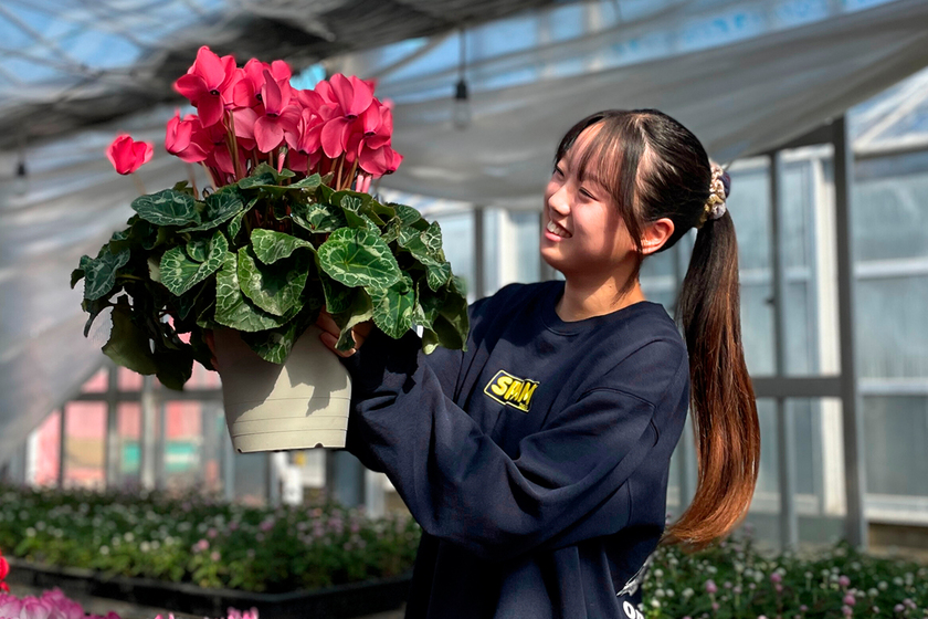 植物と向き合う楽しさを感じながら、充実した学生生活を送っています。手をかけた分だけ花が元気に咲く姿が嬉しく、この経験を将来の仕事にも生かしたいと思っています