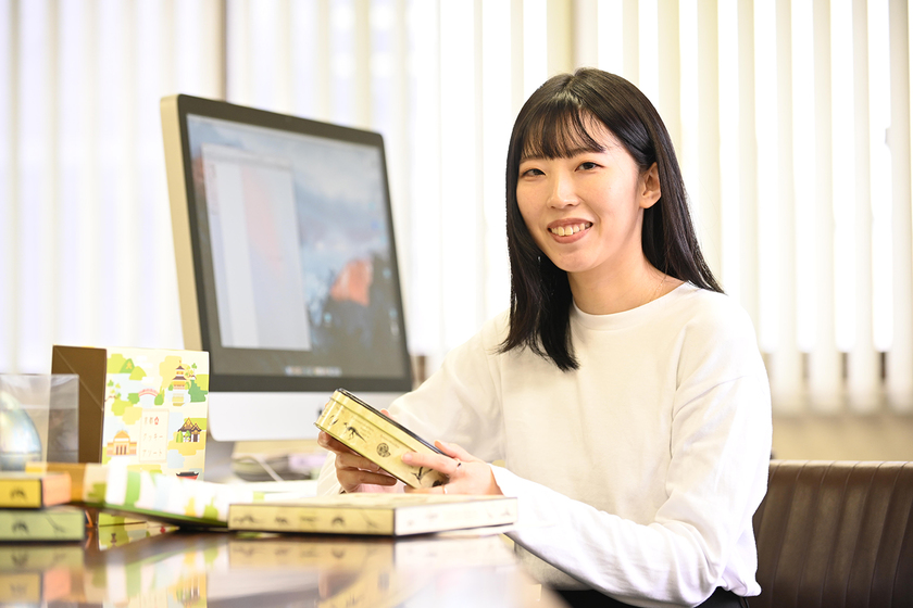 イベント時期のお菓子の企画と、パッケージのデザイン、商品を売るためのツールのデザインをしています。お菓子の企画では、原価計算や仕様設定なども行います。その他、百貨店に入っている自社ブランドのケース内デザインや商品デザインも行なっています。自分が企画デザインした商品がお店に並んでいるところを見たり、お客様が購入しているところ見た時は、とても嬉しくてやりがいを感じます。また、SNSなどに自分の商品が掲載されているのを見た時も誇らしい気持ちになります。以前、私が企画から考えた商品が予測していた3倍の量の発注があり、その後も売上が良くて継続商品になった時は、本当に嬉しかったです。