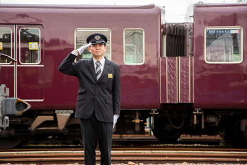 阪急電車の大阪梅田駅~河原町駅間を走る京都線の車掌として勤務しています。車掌には、電車の扉の開閉操作、車内放送、車内環境整備といったお客様に快適にご乗車いただくための仕事と、お客様の命と電車の安全を守るという大切な役割があります。車掌1年目の時、台風のために10時間以上もの停車を余儀なくされました。お客様には大変なご迷惑をおかけしてしまったのですが、安全第一であることを改めて感じました。そのため、お客様の立場に立った上で、鉄道のプロとして安全をいかに守るかを考え、責任と緊張感を持って日々の乗務にあたっています。