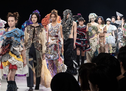 在学中に自身のブランドやショップを立ち上げたり、国内や海外のコンテストにも挑戦できる機会も多くあります。例えば、日本屈指のファッションショー「東京コレクション」でのランウェイ発表をはじめ、有名なセレクトショップに自身のブランドが並んだり、古着屋やブランドとコラボレーションしてオリジナルショップを展開、海外のコレクションで発表を続けるデザイナーからの特別講義、さらには海外研修なども実施し国内海外共にコンテストにも招待され数々の実績を残しています。社会に出た後も独立までできる人材を育てていくために、創立75年を迎えた現在でも業界との繋がりを強固にし様々な取り組みを行っています。