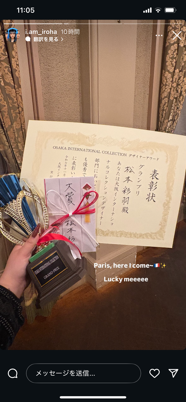 「大阪インターナショナルコレクションという大きなショーでグランプリをいただいて、パリに招待されたこと!