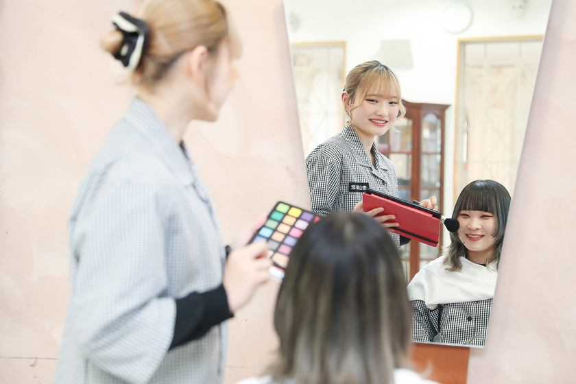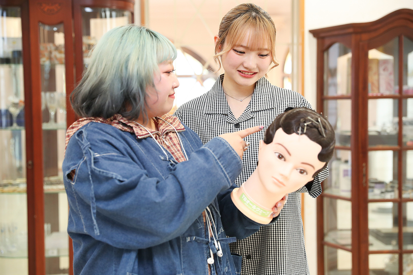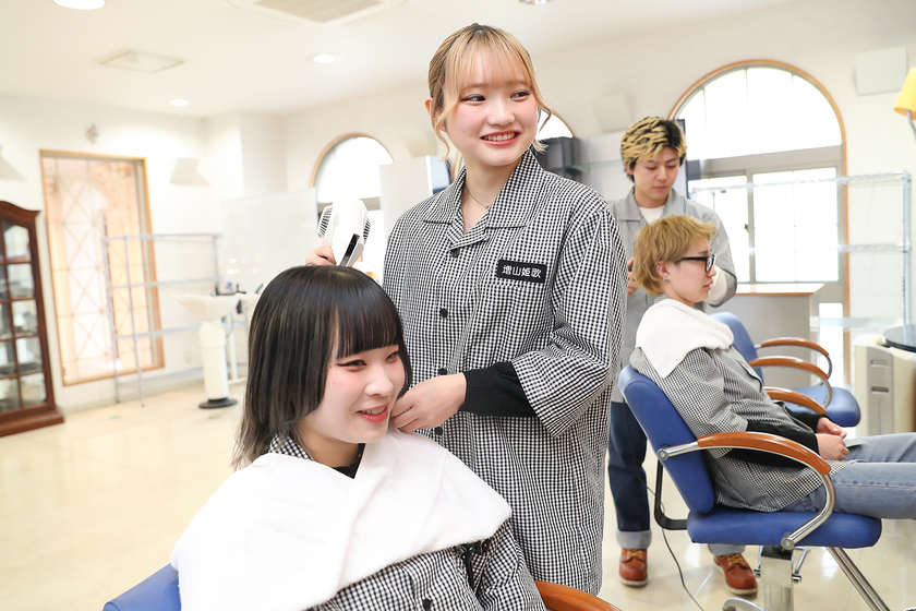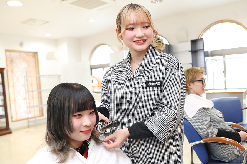 美容室でキレイにしてもらうと自然に笑顔になれたという体験から、美容師を目指そうと思った増山さん。「相モデル実習が楽しい!」と笑顔で語ってくれた彼女に学校の魅力をうかがいました。