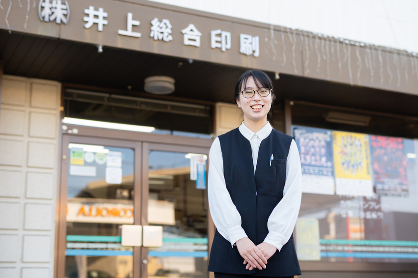 株式会社井上総合印刷 勤務/ビジュアルデザイン科/2025年卒/栃木県出身。子どもの頃から絵を描くことが好きで、高校はデザイン科に進学。高校時代の地域連携プロジェクトを通じて、デザインで地域に貢献する面白さを知る。宇都宮メディア・アーツ専門学校では地域連携実習やデザインソフトの実践的なスキルを習得。フェスティバルのロゴ制作や学校シャッターのデザインなど、様々なプロジェクトに挑戦。就職後はチラシやポスター、名刺のデザイン制作を担当。休日はミュージカル映画の音楽を聴いたり、映画鑑賞を楽しんでいる。