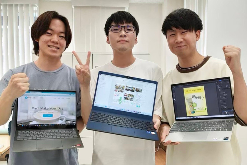 WEBデザイン・ITプログラミング科には、WEBデザインコースとITプログラミングコースがあり、「好き」を仕事にするためのIT知識とスキル深く学びます。このうちWEBデザインコースでは、まずはWEBサイト制作に必要な編集ソフトを使いこなせるようになることから始めます。基本的なスキルを確実に身につけ、さらには動画編集についても学んでいきます。卒業後は、主にWEBデザイナーや動画クリエイターとして活躍することを目指しています。
