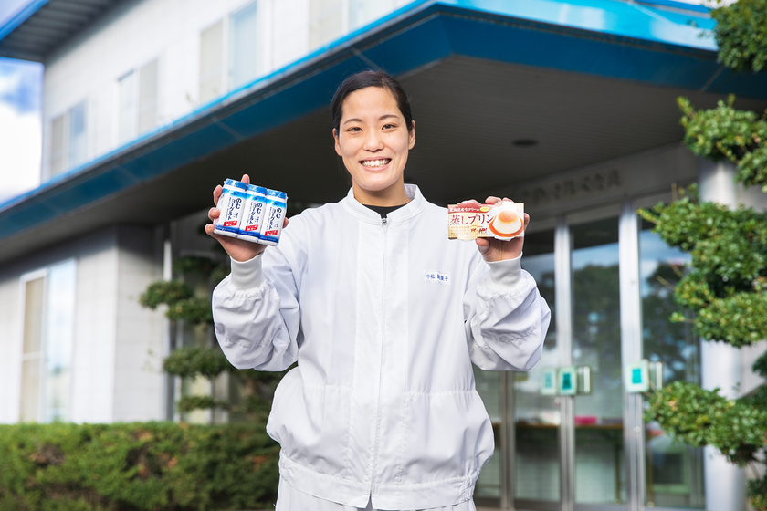 ルナ物産では、プリンや乳酸菌飲料、ヨーグルトなどの製造を行っています。製品を安心して食べていただけるよう、製品の合否判定を行い、出荷の是非を判断する品質管理を担当しています。製造した製品の中からいくつかサンプルを集め、容器のデザインや印字をはじめ、風味、pH、固形分等の理化学検査や微生物検査を行い、乳酸菌飲料であれば法定の乳酸菌数が含まれているかなどの検査をします。製品を製造した当日に出荷するために、検査のスピードや正確性、問題に瞬時に対応できる判断力が求められます。だからこそ、すべての検査で合格した製品が予定通り出荷されたとき、うれしさと自分自身の成長を実感できます。
