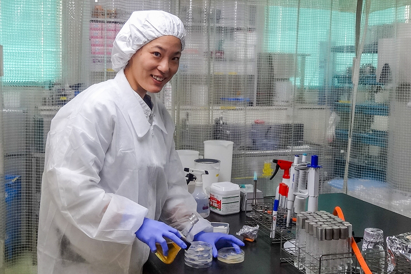 私たちの身の回りには空中を浮遊している菌がいます。その菌が落下してくるのを採取して寒天培養する実験では、採取する場所によって菌の種類が異なることや、培養によって菌が増殖し形成するコロニーにも特徴があることなど、性質を調査する楽しさを知ることができました。菌は温度や湿度などの条件によっては増殖しないため、培養の際は環境の管理や正確な作業を行う必要があります。こうした作業は今の仕事の流れとほとんど変わりません。学生時代の経験が活かせることは、働く上での自信になりました。また、学生同士でチームを組んで実験を行うことで、業務を分担して効率よく動けるよう、考えて行動する力も身につけることができました。