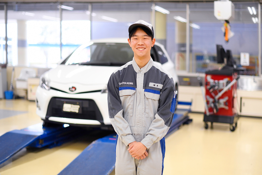 自動車整備士の知人の話を聞き、仕事に興味を持ち、トヨタ販売店で開催される「自動車整備士体験」に参加。工程を組んで、効率よく整備を行うことに面白さを感じ、この分野を選びました。