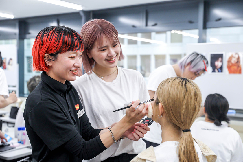 美容師として多くのお客様と向き合った先生の経験が、ヘアメイクの指導にも活かされている