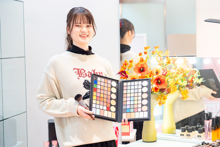 グラムールは、現場で役立つたくさんの資格取得をめざせる学校。私はメイクに必須となる色彩技能パーソナルカラー検定(R)1級を取得し、その人にあった色選びができるように。メイクの仕事にも活かしていきたいな。