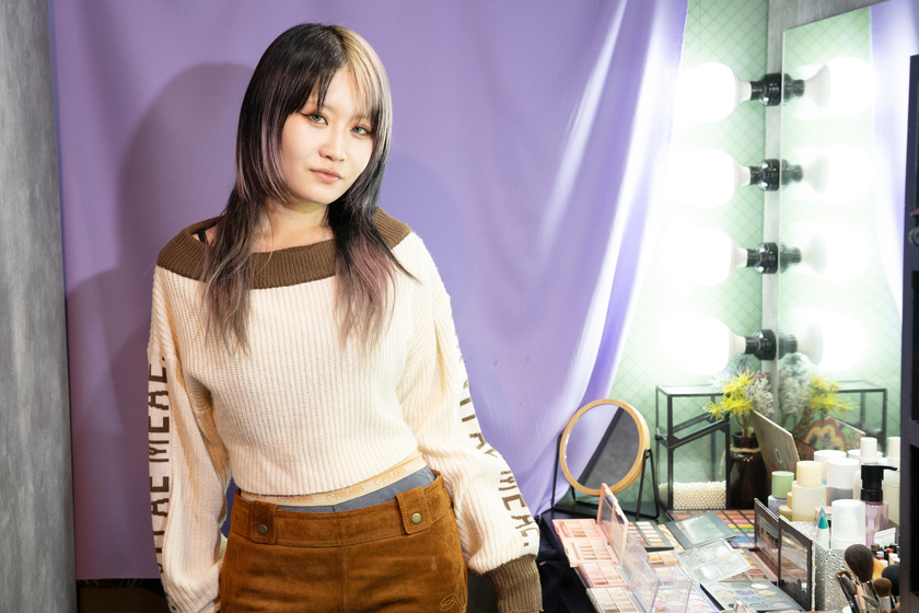 Null表参道 取締役/メイク科卒/2021年卒/高校時代から関西最大級の学生ヘアメイク&ファッションショーに参加してメイクの感性を磨き、ヘアのスキルも高めるためにグラムール美容専門学校に入学。卒業後は東京・原宿のサロンに就職して1年目から活躍するも、メイクアップアーティストになるためフリーランスに転身。SNSの動画がバズったことで知名度が広がり、2023年に設立したヘアサロン「Null」に唯一のメイクアップアーティストとして在籍。「オーラを引き出すメイク」として、遠方からも顧客が集う人気ぶり。『私の技術を信じてメイクを任せてもらいたい。絶対に自信をつけさせます』。