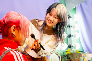 昔からメイク動画を見るのが好きで「海外でも活躍するメイクアップアーティストになる」と決めていました。高校時代からファッションショーなどに参加し、ヘアメイクやモデルを経験。周りに合わせるよりも自分の感性や個性を貫くタイプだったので、当時は少し浮いていたかも。でもグラムールの先生方はそんな私を認めてくれました。また、在学中からスナップ撮影のモデルを任されたことも大きな自信につながりました。卒業後も学校とはつながりがあり、グラムールのイベントで大人気インフルエンサーとのメイクアップショーや特別授業、パンフレット制作のヘアメイクにも携わっています。母校や業界を盛り上げる一翼を担えることが嬉しいです。
