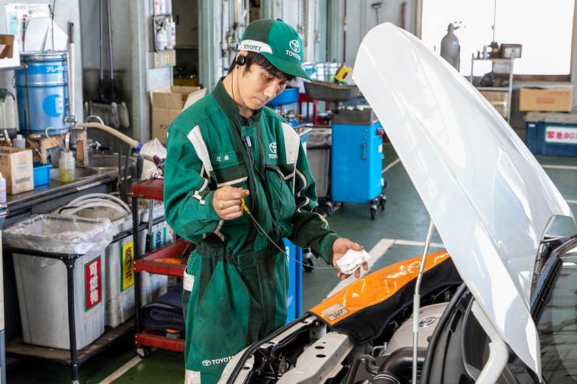 まだ1年目ですので、これから整備士として頑張っていくという段階ですが、サービススタッフとして、定期点検、法定点検、車検整備や、お客様にお車を引き渡しする際に、点検の説明を兼ねてお話ししています。先日、テールランプの割れで来たお客様に修理をした際に、喜んでもらえたことや、座席下の点検時に物を拾い、それをお客様へお渡ししたところ、ずっと探していたものだったらしく、大変喜ばれていたことなど、今はそういったお客様とのちょっとしたふれあいが嬉しいです。いずれは整備士として自分の裁量で整備ができる自由整備を任せられるようになりたいですね。