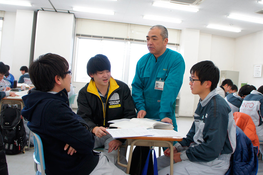 国家試験合格に向けて筆記の勉強も熱心に教える堀野先生。教員と生徒の仲がいいのも、この学校の魅力。