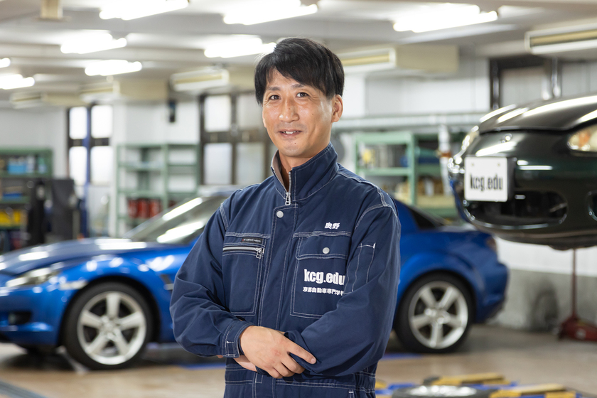高校の自動車工学科を卒業後、タクシーやバスの整備事業を展開する企業でカーエンジニアとして活躍。その後、大型車の整備を主とする企業では工場長を任され、マネジメントと人材育成に関する経験も積む。「業界の将来を支える次世代人材を育成したい」との思いを持ち、2017年、京都自動車専門学校の教員に。現在は、現場で培った軽車両から大型車両まで幅広い整備の知識・経験を学生に惜しみなく伝えている。