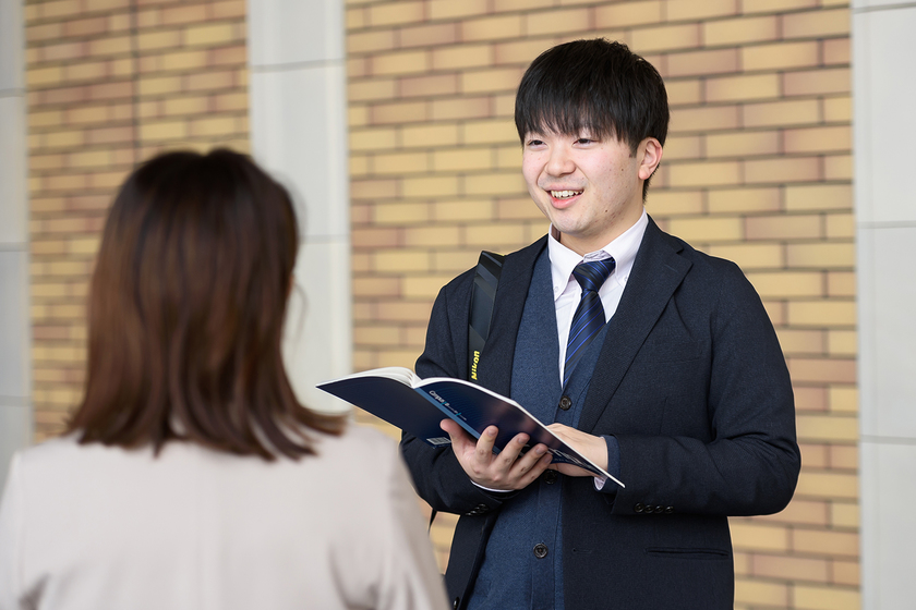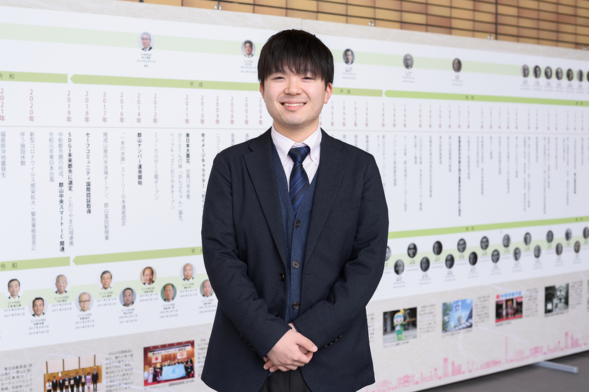 中学2年生の時、東日本大震災からの復興に向けて、懸命に働く市の職員の皆さんを見て、「自分も大好きな郡山市のために尽力したい」との思いを持ちました。公務員になるために入学したジョービでは、公務員試験に向けて友達と毎日お互いに問題を出し合い、苦手を見つけ、克服していく形で勉強したことがすごく思い出深いです。また、企業共同演習で、施策を立案したことは、今の広報紙の新たな企画を発案する際に活かせていると実感しています。他には、勉強だけでなく、実践授業や卒業生から現場の話を聞ける機会があったことから、仕事のイメージが湧き、仕事に就いてからもギャップがなかったのも良かったです。