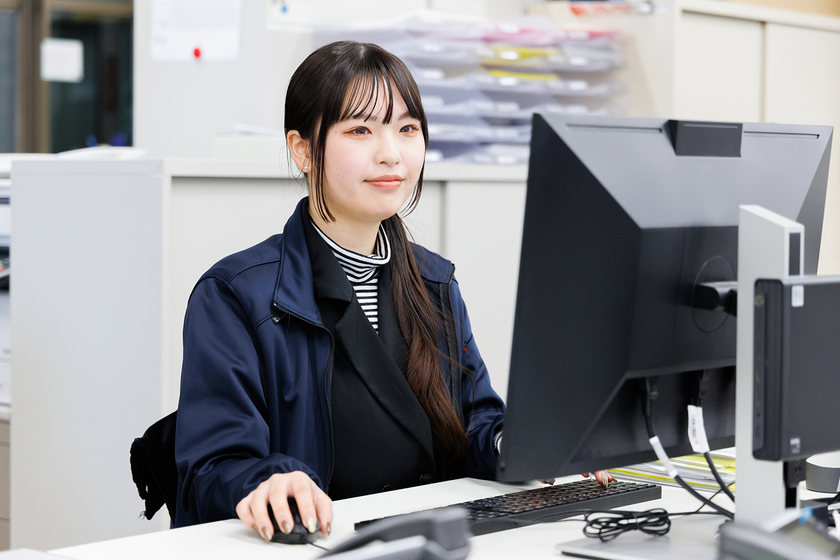 ユニフォームやワークウェアを企画・製造・販売する福山本社のメーカーで、発注から製品入荷までの生産管理を担当しています。この仕事の魅力は、働く人々を支える社会的な貢献と、アパレルとしてのクリエイティブな挑戦ができる点にあります。私たちが手がける製品は、職場の安全性やブランドイメージにかかわり、生地が一枚変わるだけで機能性や耐久性、スタイルなどが異なります。そうした面白さを日々実感しています。また情報管理や資料作成、データ入力など多様な業務を経験することで、自身のスキルアップを感じられることにもやりがいがあります。より広い視野を持ち、全体を俯瞰したうえで行動できるよう成長していきたいです。