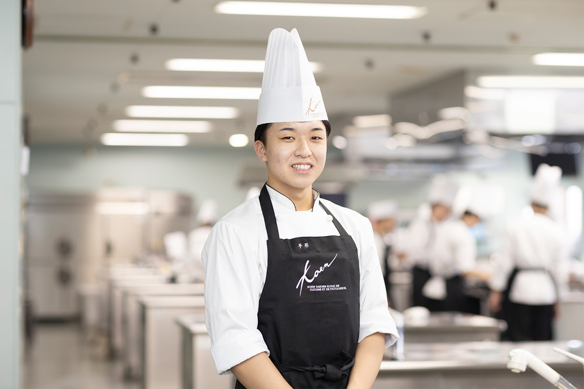 料理で喜んでもらうのが好きで、繊細で手間がかかる西洋料理の格好良さに惹かれました。豊富な設備や器具に加え、外部やフランス姉妹校の先生など、多方面の知識が得られる点と、就職への強さから本校を選びました。