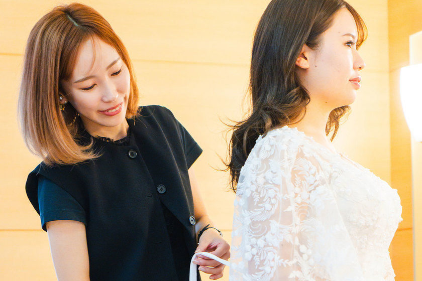 ブライダル業界での認知度をさらにアップするためにも、ヘアメイク以外にドレスのプロデュースやレンタル事業、アクセサリーの販売事業などトータルに展開していきたいと考えています。ドレスにしてもアクセサリーにしても、世の中には既にあふれるほどのデザインがあります。そういった既存のものではなく、今はまだ世の中にない可愛いもの、さらにレベルの高いものを生み出し、お客さまの満足度を200%にも300%にも高めていくことが目標です。新しい価値や唯一無二のものを創造するのは並大抵のことではないけれど、だからこそ自分自身を奮い立たせて挑戦したいと思っています。そしてお客さまに最上級の喜びを提供したいですね。