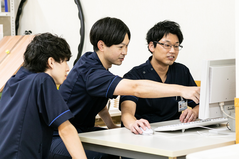 当院は急性期病院で、入院患者様を対象として運動器疾患の術後や、脳血管疾患、呼吸器疾患、循環器疾患、がん発症後のリハビリテーションを主に行っています。理学療法士の仕事で「これが原因でこうなっている」というように「〇〇である」と言い切るのはとても難しいことだと思っています。「Aではない」「Bでもない」「残ったCであるかもしれない」と地道に選択肢を消していく作業が大切だと感じています。だからこそ、自分を客観的にみながら、「本当にこの臨床推論で正しいのか」と自問自答することが重要。まだまだ勉強不足のため今後も様々な資格を取得したいです。やりたいことは尽きません。それが面白さなのかもしれません。