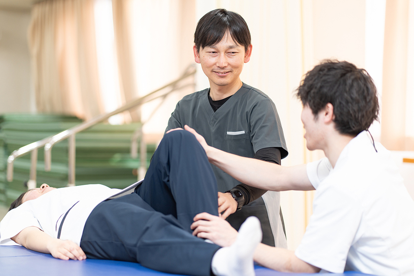 国際医学では、学生がチームになり勉強に取り組むので学生同士の仲が良く、先生との距離も近いです。たとえ勉強に自信がなくても一人じゃないから大丈夫!みんなで一緒にリハビリの勉強を頑張りましょう。