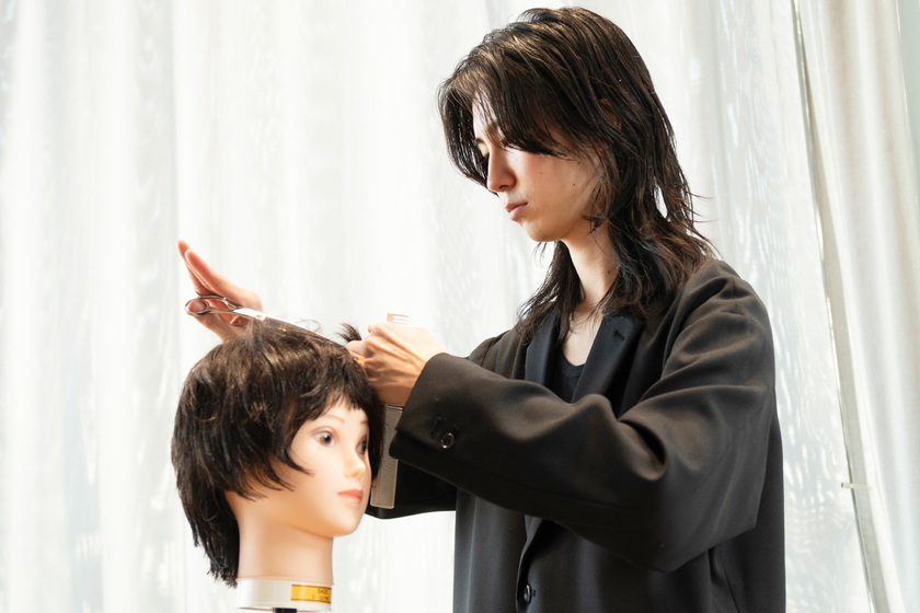 中2のとき、ネットで、個性的なヘアスタイリストさんが発信している動画を見て「こんな技があるんだ」と驚きました。それを真似て自分の髪をセットし始め、高校に入ってからは友人の髪をスタイリングするように。それがとにかく楽しくて、本気で美容師を目指そうと決心したんです。いくつかの学校のオープンキャンパスに参加しましたが、一番楽しく過ごせたのが国際文化でした。国際文化のオープンキャンパスでは、実際にどんな技術を学べるのか幅広く体験することができましたし、高校生にとってもハードルが高すぎない楽しい内容でした。学校全体の雰囲気も把握しやすく、「ここで学びたい!」と思ったことをよく覚えています。