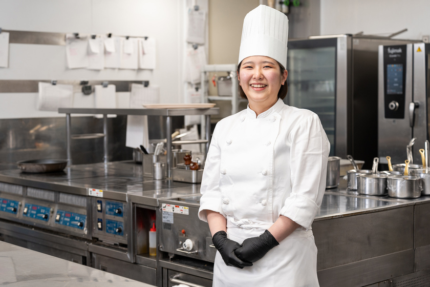 現在、フランス料理の冷製料理を担当しており、フロマージュを勉強しています。毎日、美味しい料理を作るために、どうしたらより美味しくなるか調べたり、上司にアドバイスをもらったり研究を続けています。完成した料理をお客様に召し上がっていただき「美味しい」と褒めていただけるのが本当にうれしく、やりがいを感じます。また、職場では後輩ができ、教える立場になりました。指導する際、一人ひとりスキルが異なるため同じ作業でもその人に合わせた伝え方をしています。後輩の仕事の幅が広がることで組織としての成長につながっていることも喜びに感じます。今後も、美味しい料理を提供できるように努力していきたいです。