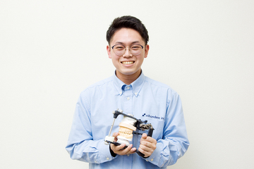株式会社日本デント 勤務/歯科技工士学科 卒/2021年3月 卒/群馬県立桐生工業高等学校 機械科に在学中はロボット研究部に所属し「全国高等学校ロボット競技大会」を目指していたという渡邉さん。器用な手先を生かしハンダゴテで基盤を作るなどロボット制作に没頭した。機械科で学ぶ中、機械の性能よりデザインに興味があることに気づき好きな道へ進むことを選択。インターンシップで株式会社日本デントを訪問し実用性の高い「歯科技工士」という職業に出合う。迷った時の指針は「楽」ではなく「楽しい」を選ぶことと語ってくれた。