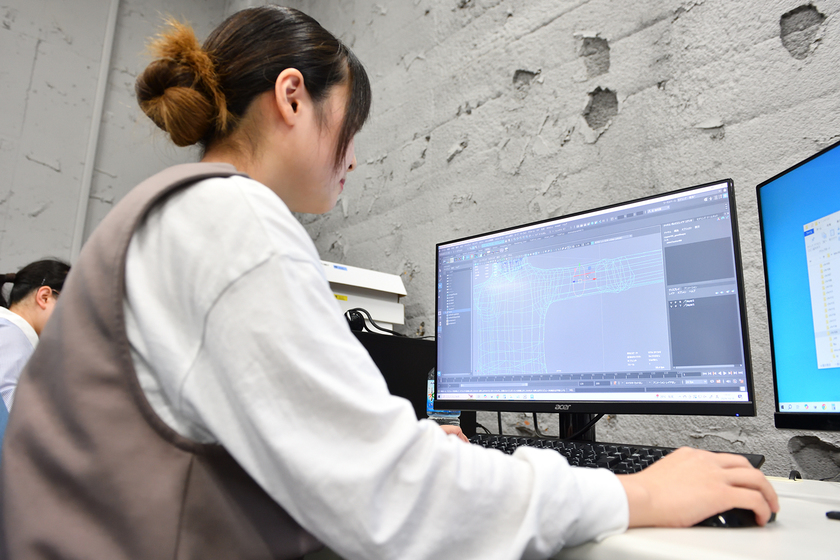 入社1年目ですが、すでにいくつかのプロジェクトに携わり、ゲームに登場するキャラクターの服や背景などの3DCGを作成しています。先輩社員が作った3D空間に自分が制作したモデルがピッタリと馴染んで「これでいこう!」と先輩からOKをいただけると、とても嬉しいです。たくさんの人が参加するゲーム制作に、私は一部分しか関わっていないのですが、これから発売されるソフトのスタッフロールに名前が載るので、今から楽しみにしています。仕事で一つひとつ経験を重ねることで、少しずつ一人前に近づいている実感があり、また周囲に「ゲームを作る仕事をしている」と言うと、好印象を持っていただけるのも、この仕事の魅力だと感じています。