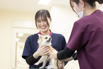 トリミング実習を行うパートナーは、譲渡犬です。譲渡犬は人慣れをしていないケースもあり、被毛の状態も万全とは言えないことがほとんどです。実習では、新しい環境でも適応できるようにトレーニング(しつけ)を行い、犬へ負担をかけずにトリミングするプロの対応力を学びます。さらに、本校独自の「SNS実践」の授業と連動し、トリミング後の「奇跡の1枚」を撮影。SNSでの見せ方やハッシュタグの戦略を学びながら、譲渡犬の里親探しにも貢献できるのが最大の魅力です