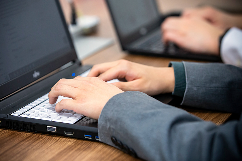 中学生のとき、ゲームにハマったのがきっかけでした。高校で受けたプログラミング言語の授業でさらに興味を持ち、もっと詳しく勉強したいとカギセンへの入学を決めました。カギセンを選んだのは、少人数で学べるからです。少人数であれば、わからないことがあってもすぐに質問できます。そのような環境で勉強できれば、知識や技術がしっかり身につくと思いました。カギセンでの学生生活を通じて、ITに関するさまざまな話も聞けました。そこで、ITはゲーム分野だけでなく、社会に役立つ技術でもあることを知りました。僕もその一端を担えるようになりたいと考え、会社の基盤となるシステムを作るSEを目指し、当社への入社を決めました。