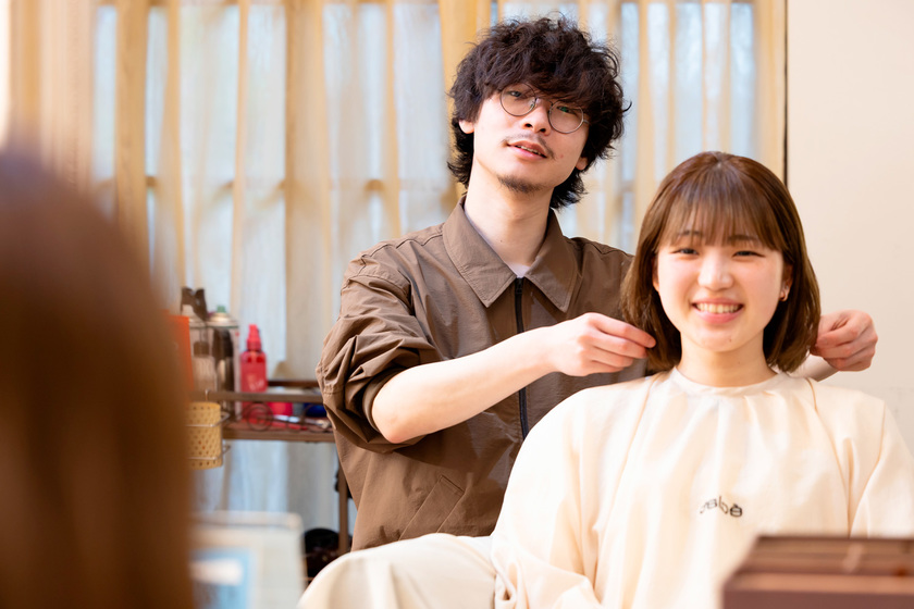YAMANOではカットやカラーといった技術はもちろん、着物、ネイル、美容福祉など、幅広い分野の知識を得ることができました。新人時代に先輩のヘアメイクの現場に同行した際にも、着付けの準備やネイルの施術時に、「着付けの際にタオルが必要だな」「そろそろネイルの仕上げだからトップコートを準備しよう」というように、先を見越した立ち回りができました。また、学生時代にコンテストに出場したことも成長につながっています。さまざまなカラー剤を試したり、ブリーチに挑戦したり、試行錯誤を重ねるなかで失敗も多く経験しましたが、そこで得たカラーやデザインの引き出しは、美容師として働くうえで貴重な財産になっています。