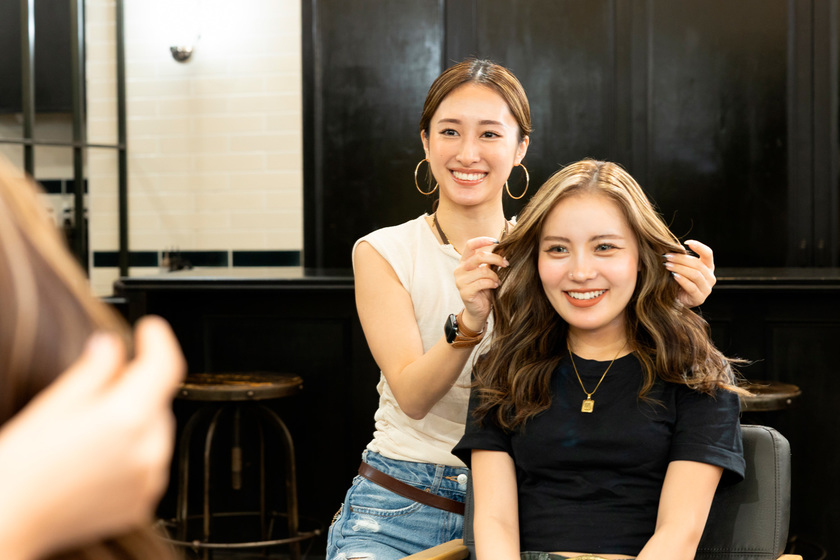 美容師として技術はもちろん大切ですが、それ以上に大切にしているのは、お客様と会話する時間。趣味や旅行の話で盛り上がったり、時には悩み事を聞いたり、結婚する予定を教えてもらったり…会話を通して、人と人としてのつながりや信頼関係を築いていけることに、大きなやりがいを感じています。ふとした会話の中にスタイリングのヒントが見つかることもあって、そして何よりお客様の「綺麗でいたい」という気持ちに、近くで寄り添えることも嬉しいですね。もし私がお客様だったら、綺麗でセンスのいい人に担当してもらいたいですから、自分自身も見た目の美しさだけでなく、言葉遣いや立ち居振る舞いまで、常に磨くことを意識しています。