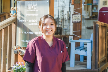 今の課題はコミュニケーション力を高めることです。当院では「丁寧な説明」を方針の一つにして、飼い主さんに病状や治療内容、注意すべきことなどをわかりやすく伝え、安心して一緒に暮らせるようにサポートしています。私も飼い主さんにきちんと説明し質問にも答えられるように、病気や治療、動物の生態など専門知識を増やし、しっかり理解することを心がけています。幸い院長先生は診療しながら、いろいろなことを教えてくださいます。先輩方が患者さんに対応するときの話し方も参考になります。まさに毎日が勉強です。将来は愛玩動物看護師の国家資格も取得し、動物と飼い主さんの両方とも十分なケアができるプロになりたいと考えています。