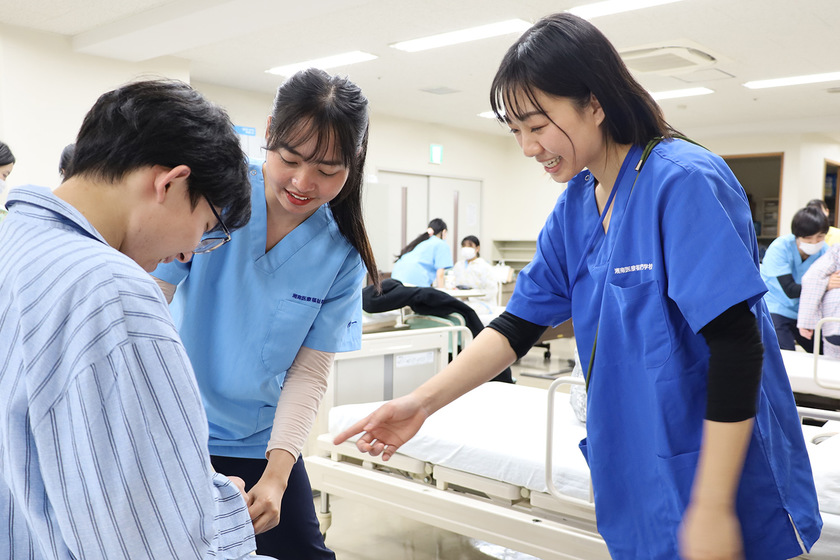 担当科目は「生活支援技術II」と「介護過程」であり、「教科書に基づいた基礎的な知識に加え、介護現場での応用例を分かりやすく伝えることを目標としています。一方的な授業ではなく、学生が主体的に考え、議論し、意見を出し合える雰囲気づくりを大事にしています。」と神田先生。実際の介護場面を想定した実践的な授業を通して、学生が現場で活用できるスキルと柔軟な対応力を身につける授業をおこないます。