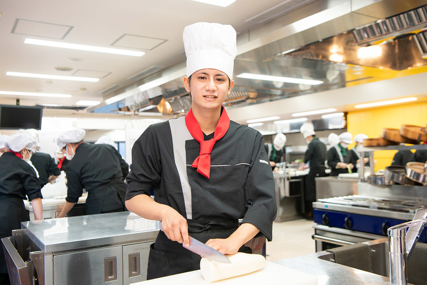 入学前はどの料理にも興味があり一つにしぼりきれなかったのですが、今は西洋料理の道に進もうと考えています。以前、豊富な現場経験を持つ先生から「お客様にご満足いただける美味しい料理を提供することで、結果を出すのがプロ」というアドバイスをもらいました。この言葉を胸に、料理人として成長することが目標です。